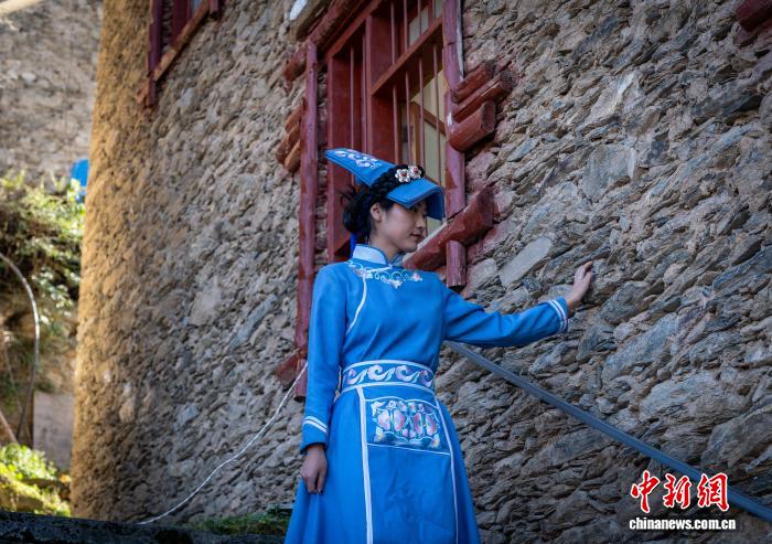 图为乌虎羌寨中的羌族青娥。韩金雨 摄